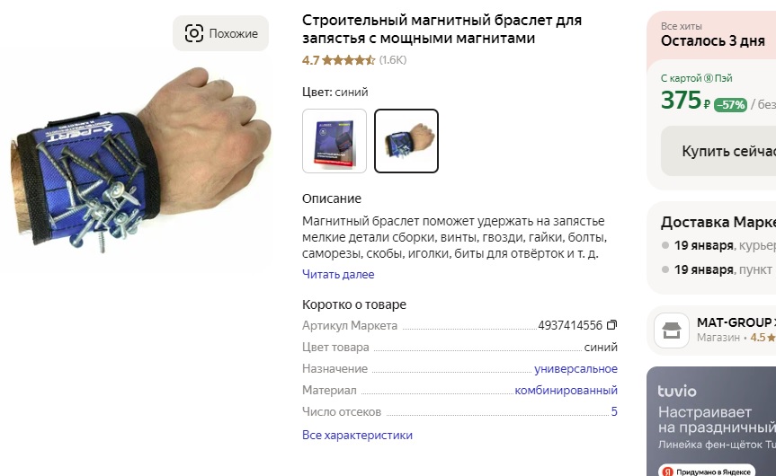 На Новый год Дед Мороз подарил мне совершенно ненужную для меня вещь: строительный магнитный браслет. Он позволяет при различных работах не терять разные болтики, винтики, гаечки...